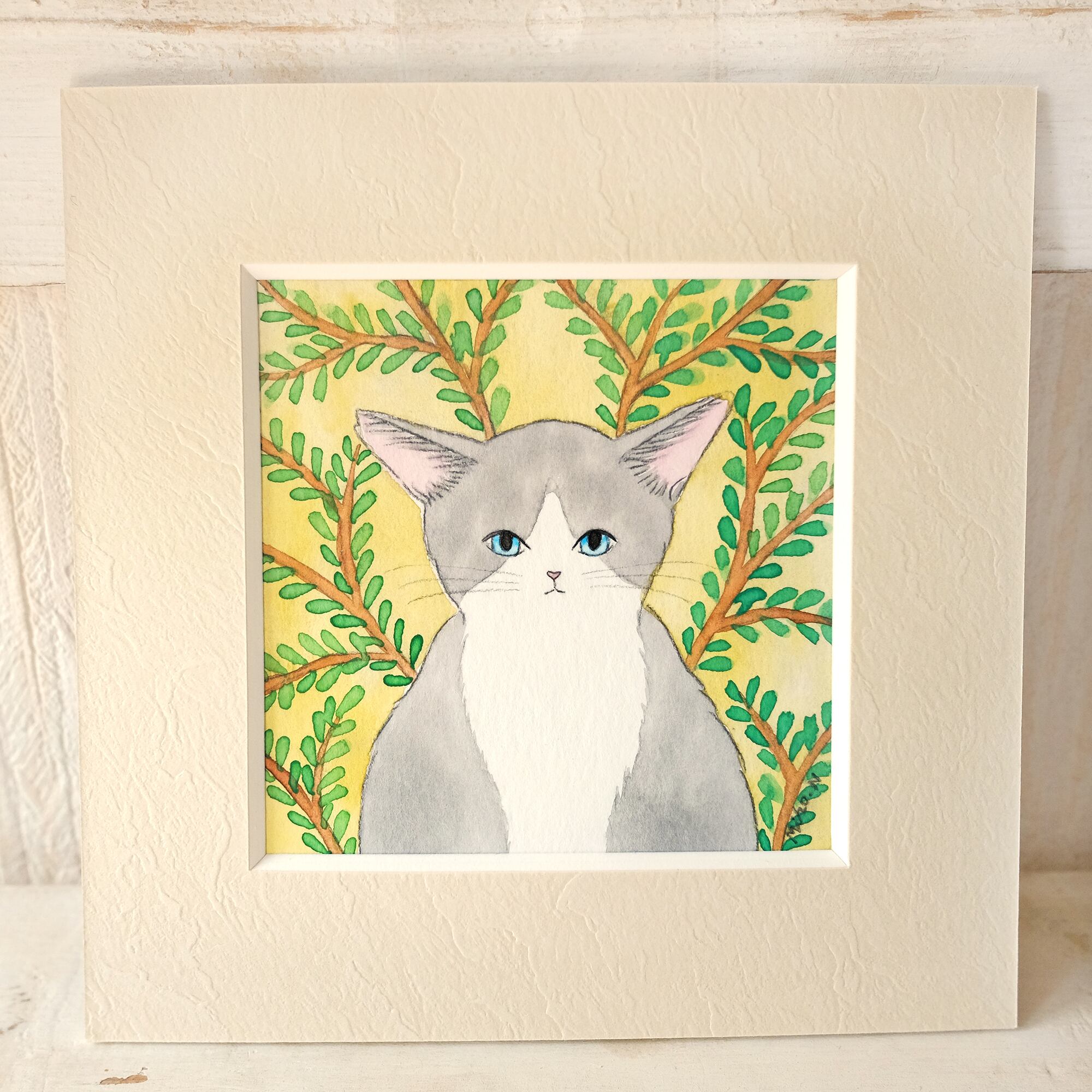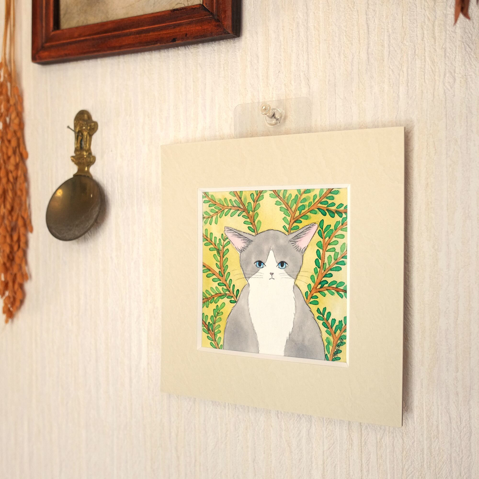 原画「猫たちのポートレート グレーのハチワレ猫」