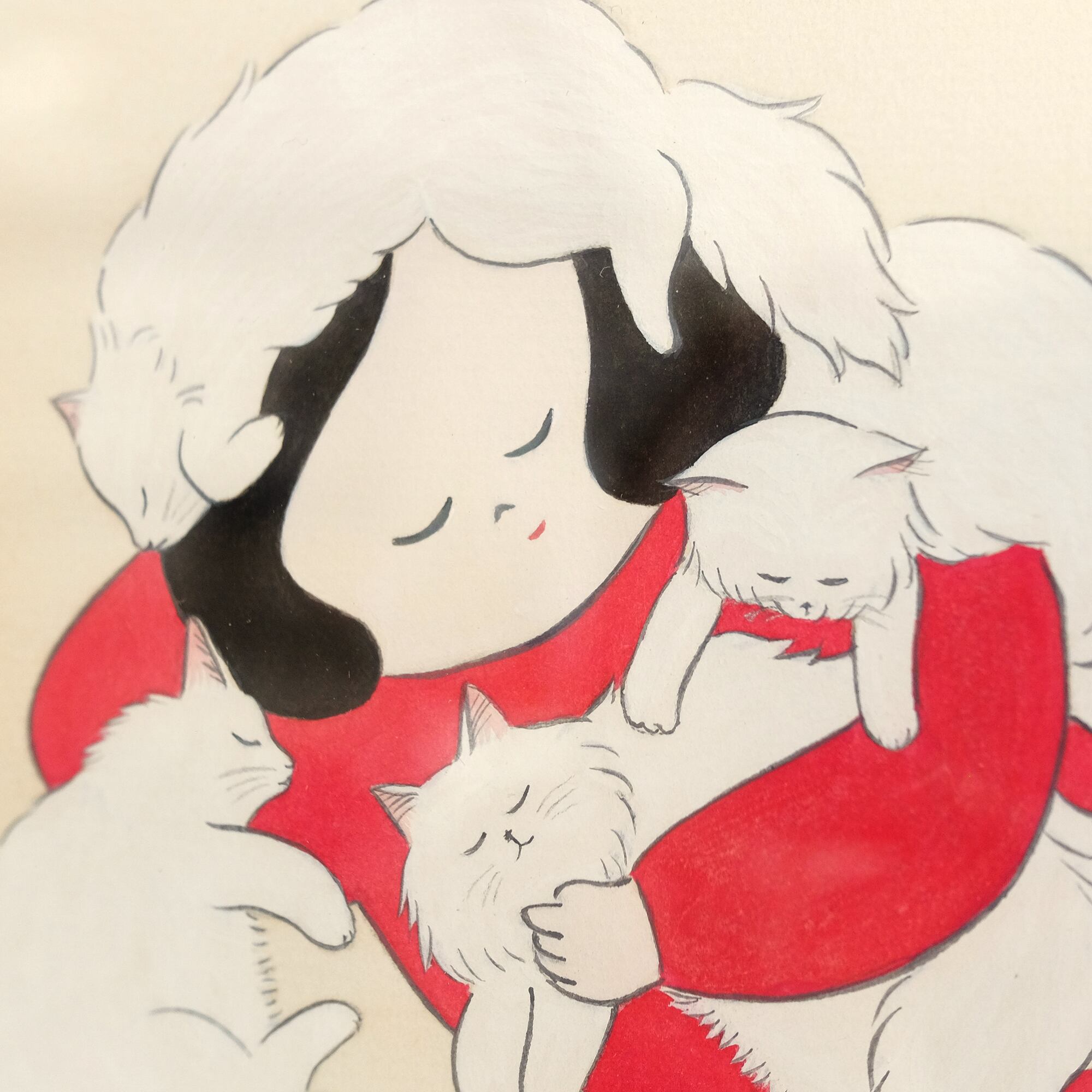 白猫たちを守ってあげたい女の子。